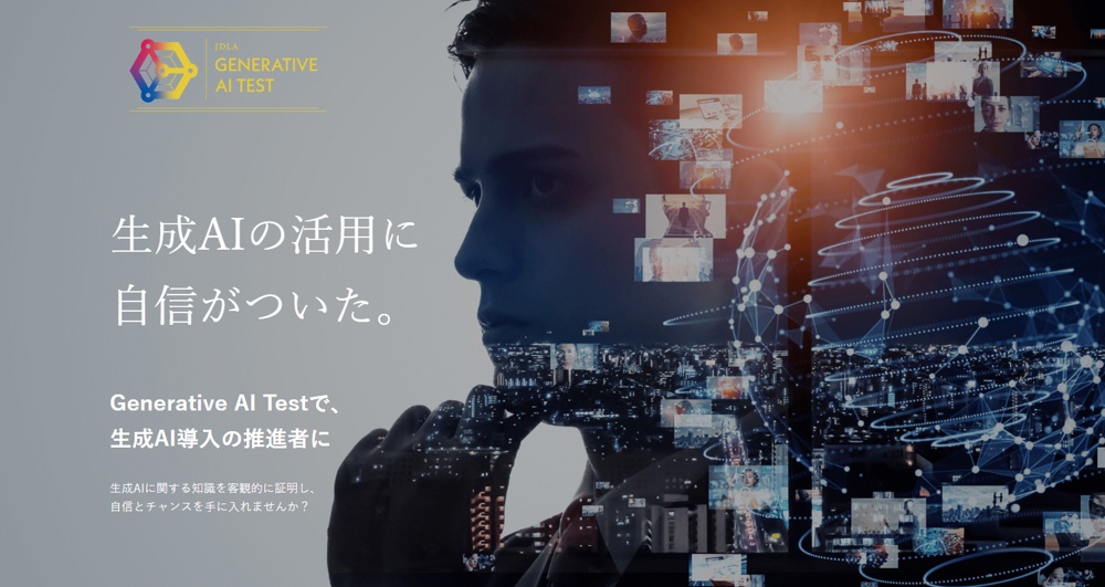 Generative AI Testとは、一般社団法人日本ディープラーニング協会(JDLA)が実施する、生成AIに特化した知識や活用リテラシーの確認の為のミニテストです。